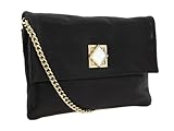 This Michael Kors Jewel Clutch is crafted of fine leather and has gold -toned accents with a jewel turn clasp. Inside you will find this bag lined with signature Michael Kors lining and a zip pocket along the back wall with 6 card slots in front of it. This handbag measures 10 x 7 x ½ inches and has a shoulder drop of 14 inches. This designer handbag may have been on retail shelves. Your satisfaction is 100% guaranteed.