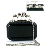 What better way to complete a powerful evening ensemble than with this Knuckle Duster Skull Clutch? This darkly glamorous piece will add instant attitude to your look and carry your evening essentials. The dimensions are 5.5" X 1.5" X 3.5" with a 42" shoulder strap. Made in China.