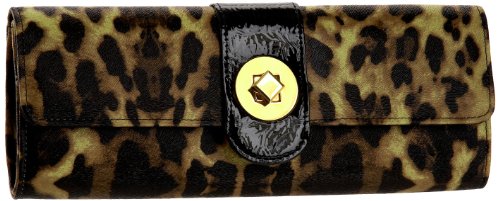 Introduce your wild side to your fashionable side with the esthetically pleasing Ari from Big Buddha. Clutch style handbag made of colorful fabric. Holds your identification, currency, and personal technology. Crossbody chain strap. Gold-tone hardware with leather strap accent. Twist lock closure. Man-made lining with multifunction pocket. Imported. Bottom Width: 10 1 2 in ; Middle Width: 10 1 2 in ; Top Width: 10 1 2 in ; Depth: 1 1 2 in ; Height: 4 1 2 in ; Strap Length: 22 in ; Weight: 12 oz
